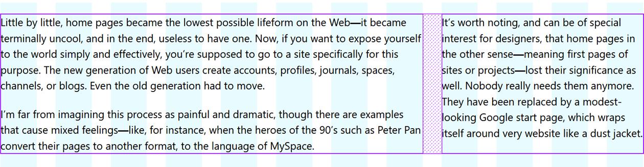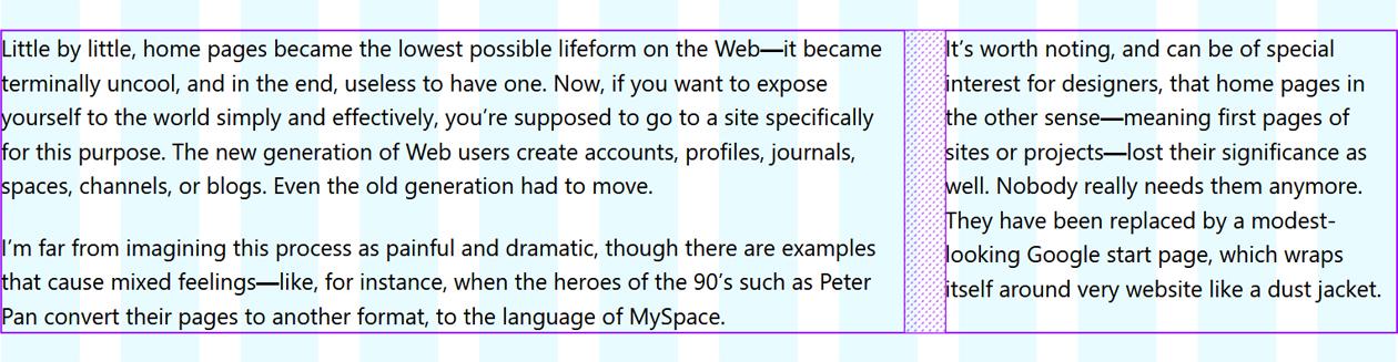 Ultimately, the columns are not aligned to the visual grid I’m using. Here’s the ideal outcome in this instance: